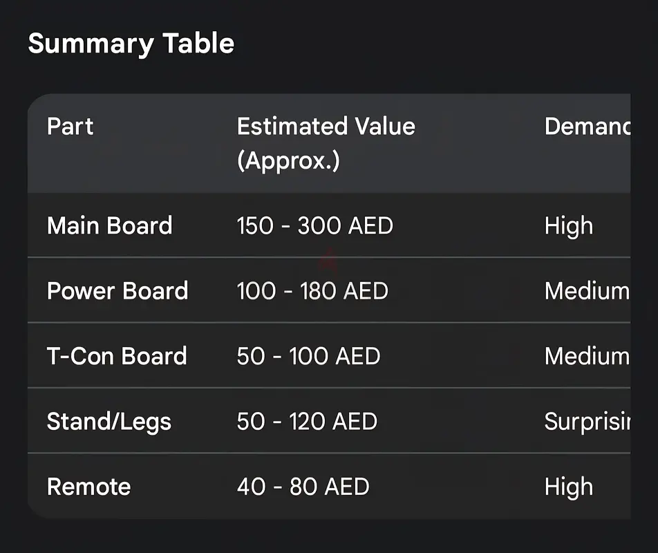 Sony Original TV 65", just one year old, but LCD is damaged so need to sell it's full TV parts as original from original TV.. All parts with full TV Box in just 150 aed.. Tourist club area, Abudhabi Call directly on