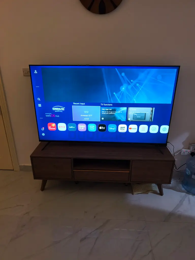 I'm selling my 65-inch GeneralTEC LED TV. I bought it about 6-12 months ago and used it only once; it's in flawless condition and works perfectly. The TV supports UHD 4K and is currently placed on a table mount. There is no warranty applicable.