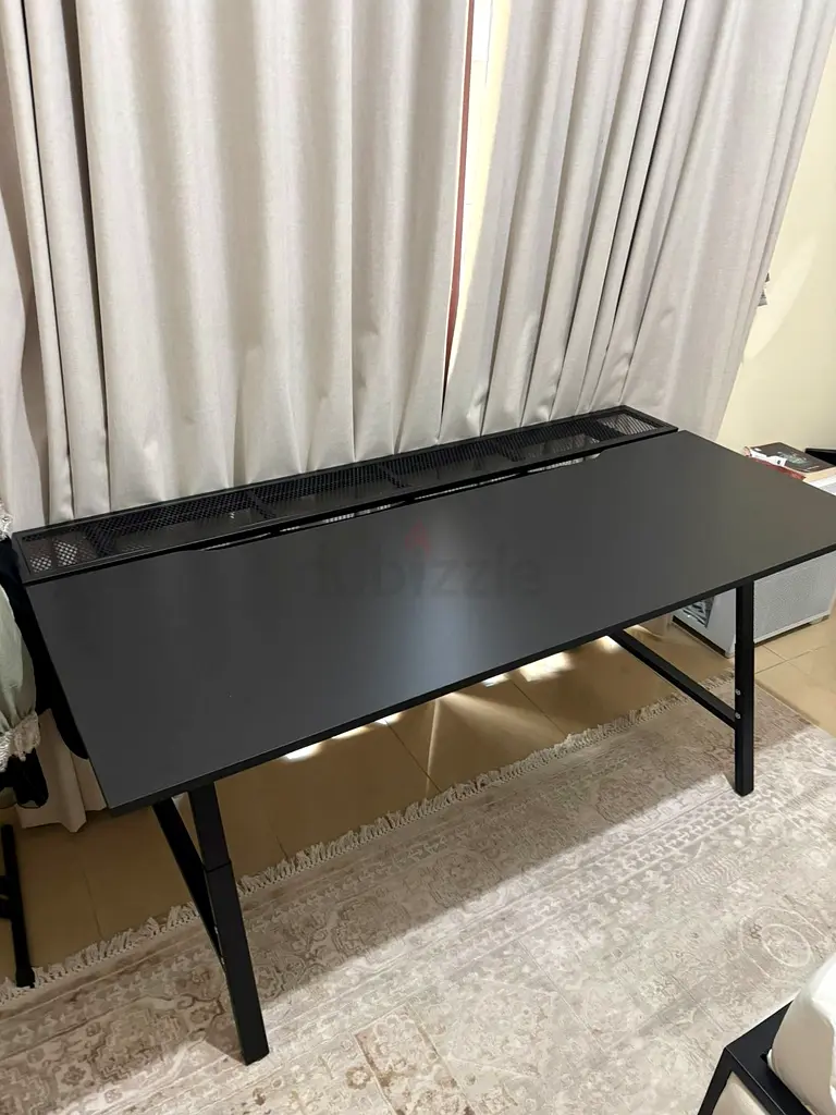 I’m selling my black metal computer/study desk. I bought it about one week ago and it’s in excellent condition with light usage. The desk is rectangular, built on a sturdy metal frame and designed for a single user. It has a smooth black surface and a rear mesh cable-management tray to keep wires tidy. Ideal for a home office or study where you need a simple, durable workspace.