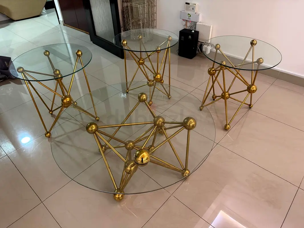طقم طاولات أنيق جداً بتصميم عصري مميز، يتكون من طاولة رئيسية + 3 طاولات جانبية.