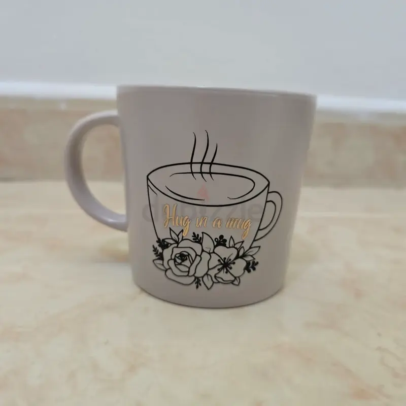 I’m selling a brand new, never used beige ceramic coffee mug in flawless condition. It has a comfortable handle and a simple printed design of a steaming cup with floral accents and the phrase "Hug in a mug" on one side and on the other: "Positive Mind, Positive Life.