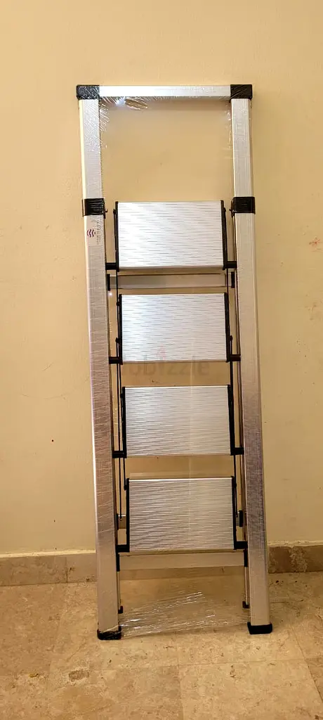 I am selling a lightweight folding step ladder that is perfect for various home tasks. This ladder is brand new and has never been used, so you can feel confident in its flawless condition. Its sleek silver color not only gives it a modern look but also makes it a practical addition to any home. The ladder is designed to be easily portable and convenient to store, making it ideal for reaching high places when needed. Whether you're changing light bulbs, accessing top shelves, or any other home improvement projects, this ladder will make your tasks easier and safer.