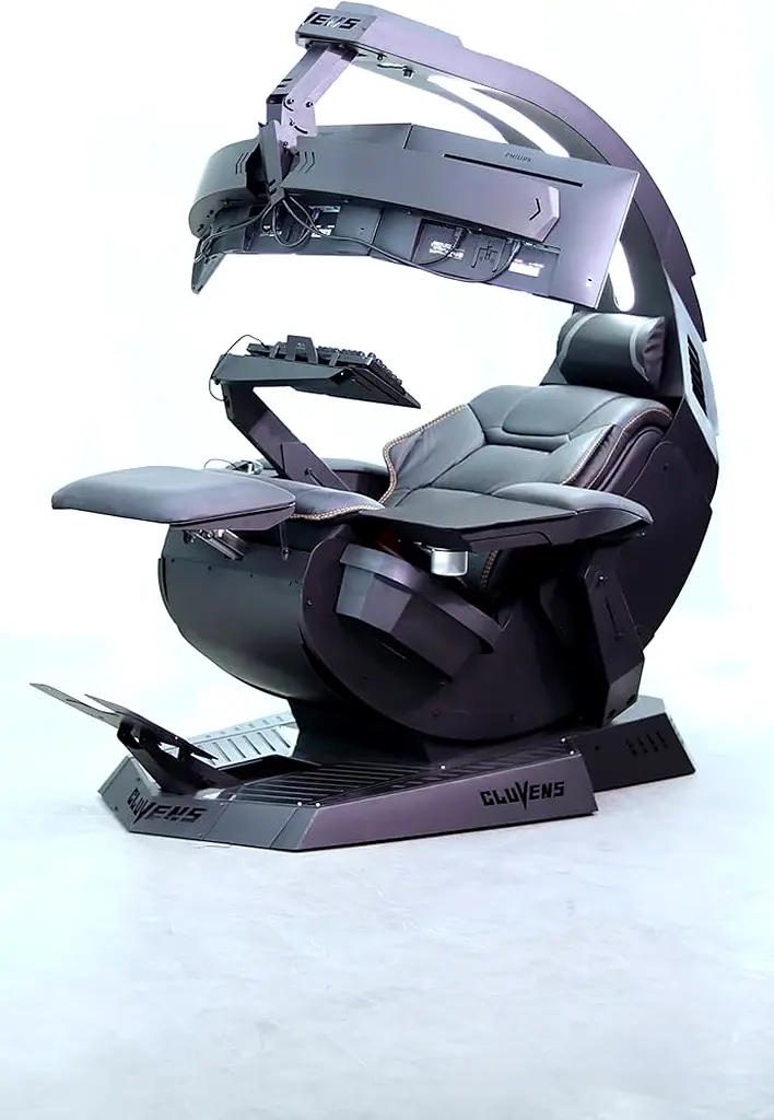 Cluvens Manticore gaming chair for sale. Extra wide, cushioned gaming chair with 160-degree zero gravity tilt. Comes with massage chair upgrade.