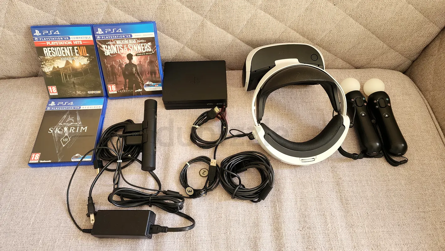 I'm selling my complete PlayStation VR bundle, and it's in excellent condition. This bundle includes everything you need to jump into an immersive gaming experience. It comes with the VR headset, PlayStation camera, two motion controllers, and multiple games including Resident Evil and Skyrim. Everything has been well taken care of and shows minimal signs of wear. It’s perfect for anyone looking to dive into virtual reality gaming. Don't miss out on this fantastic deal!