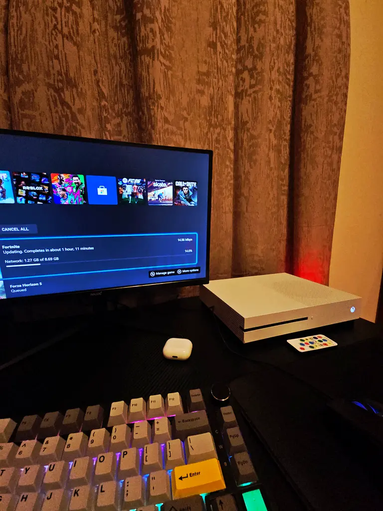 I'm selling my Microsoft Xbox One console, which is in excellent condition and has been gently used for about 1-2 years. This gaming system comes with two dual controllers, making it perfect for multiplayer gaming sessions with family and friends. The console offers a fantastic gaming experience with a wide variety of games available. Everything works flawlessly, and it's ready for a new home where someone can enjoy it as much as I have.