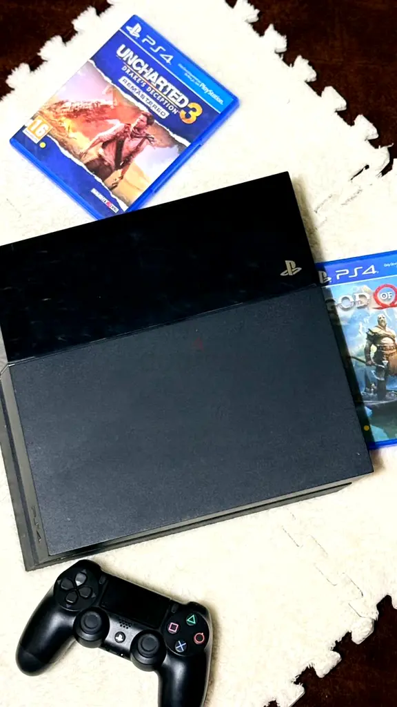 I'm selling my Sony PS4 Slim that I’ve owned for about 3 years. It’s in good working condition and has been used normally at home. Included in the sale is one DualShock 4 controller (shows normal wear but fully functional) and two game discs: Uncharted 3: Drake’s Deception and Destiny. The console powers on, reads discs, and connects to controllers as expected. No major scratches or damage that affect performance; comes as shown in the pictures without original box or extra cables. Ideal if you want a ready-to-play PS4 package with a couple of popular single-player titles.