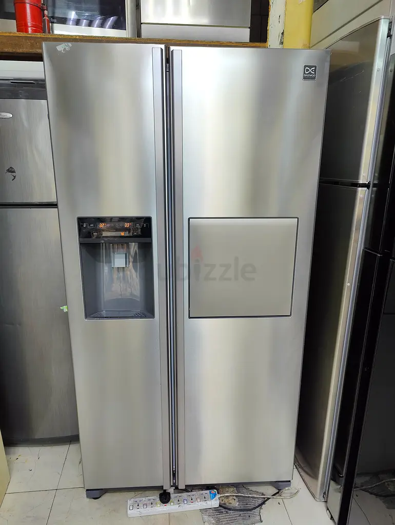 I’m selling my Daewoo side-by-side refrigerator that features a water dispenser and an ice maker, along with a mini bar section. This appliance is in excellent condition and has been lightly used, making it a perfect addition to any kitchen. The sleek stainless steel design not only adds to the aesthetic appeal but also provides excellent performance for preserving your food and beverages. The refrigerator includes two spacious doors for easy access to your groceries. Plus, it comes with a warranty for added peace of mind.