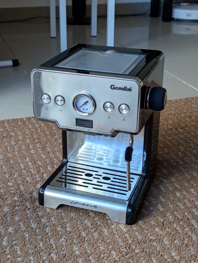 I'm selling my Gemilai CRM3605 Espresso Machine, a great addition for any coffee lover looking to brew high-quality espresso at home. This machine is in excellent condition and has been lightly used, so it's ready to deliver delicious coffee for years to come. The sleek black and stainless steel design not only looks great but is also easy to clean.