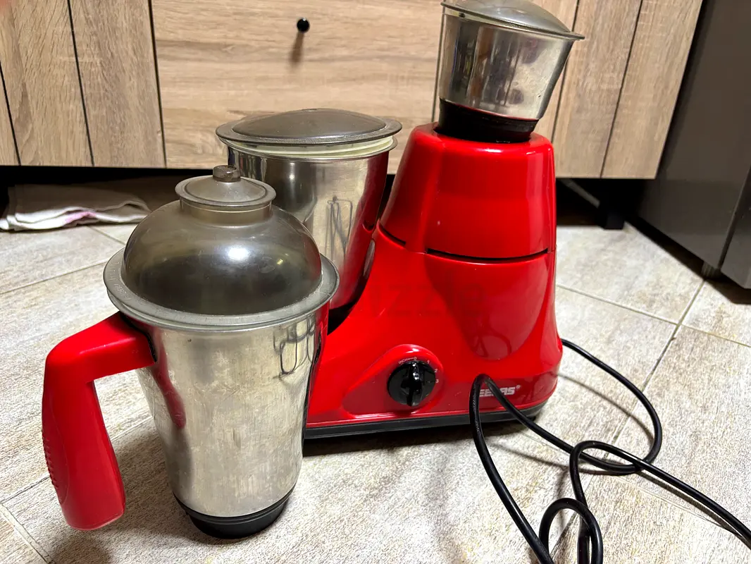 I’m selling my red mixer grinder that's been a reliable kitchen companion for the last few years. It comes with multiple jars, which makes it perfect for everything from blending smoothies to grinding spices. The grinder is in excellent condition and shows minimal signs of wear despite normal usage. Its vibrant red color adds a fun touch to your kitchen. Whether you're prepping meals or whipping up delicious sauces, this mixer grinder is sure to make your cooking experience a breeze!