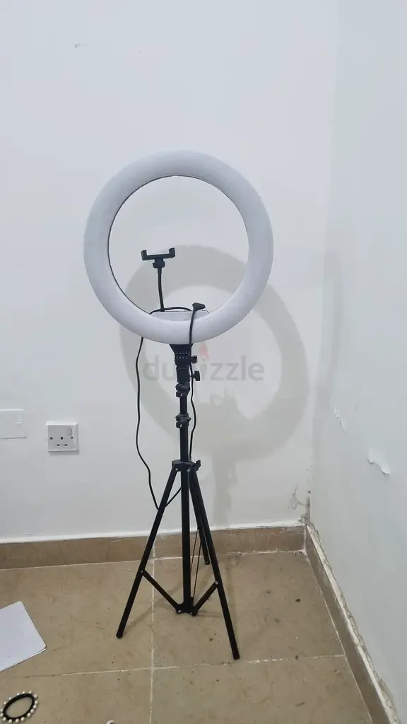 I’m selling a 1–2 year old ring light mounted on an adjustable tripod stand. It’s in excellent condition and works normally—power cable intact, brightness adjusts, and the phone holder is attached. I used it mainly for video calls and basic content creation; no dents or damage to the ring, and the tripod extends and locks securely. No warranty available.