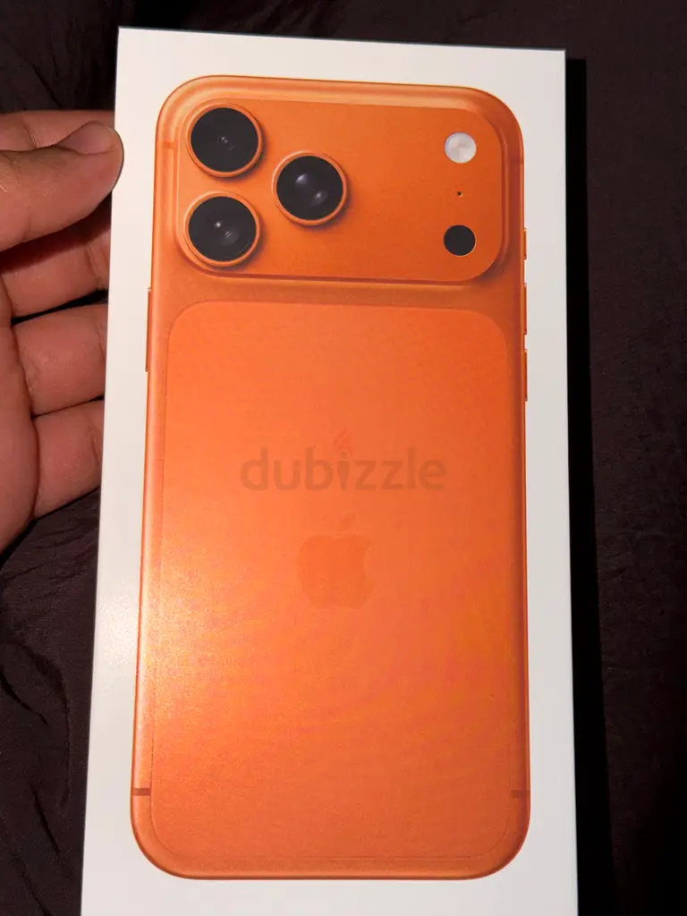 I'm selling my brand new Apple iPhone 17 Pro Max in a vibrant orange color. This model comes with a generous storage capacity of 256 GB, perfect for all your apps, photos, and videos. The condition is new, and it comes with a warranty for peace of mind. There are no damages on the device, and it has never been used. This phone is sleek, powerful, and ready for its new owner.