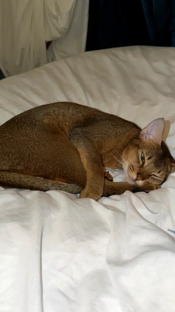 Abyssinian cat looking for a new family. He's a 3-year-old male, neutered. He's only rehomed with a solvent family. This is a very active breed, always demanding attention. He's not a simple cat; he just lies around, always on the move, and loves to play. If you're not home, this breed isn't for you.