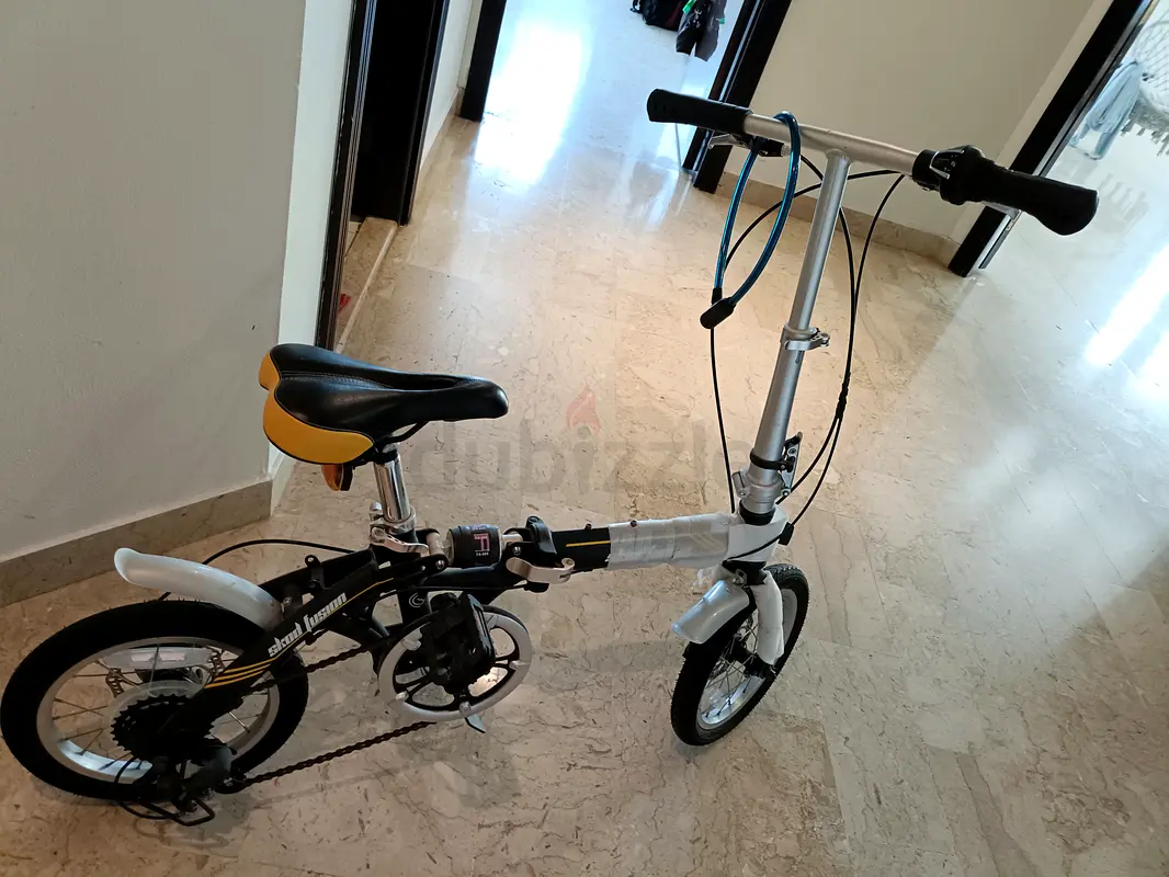 I'm selling my compact folding city bike in Silver & Black. I bought it about a one and half year ago and it's been kept in Excellent condition with normal daily use. It's a 5-speed setup with a chain drive, easy-to-fold frame, adjustable seat height, and upright handlebars — great for commutes and carrying onto public transport. Tires, brakes, and folding mechanism all work fine; no mechanical issues. Located in Abu Dhabi, available for viewing.