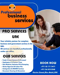 We are offering different kind of Services Details are mentioned below: -New Business setup -License Renewal -License Amendment -License cancellation -Audit Report -Adnoc Approvals -Haad Approvals -NOC -Partner visa process