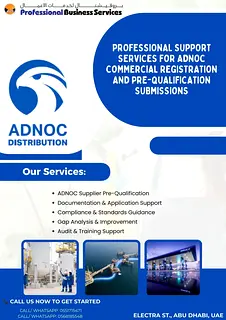 Expert consultancy for ADNOC commercial registration and pre-qualification application management