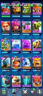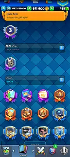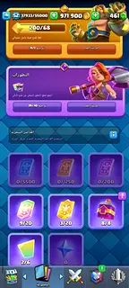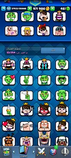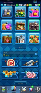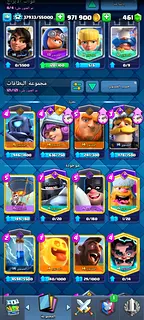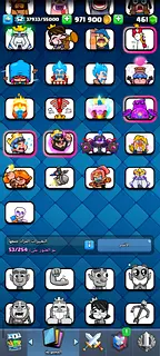 حساب كلاش رويال 10000+ كأس لفل 52 قريب من 15، مليون فلوس و 500 جوهرة.