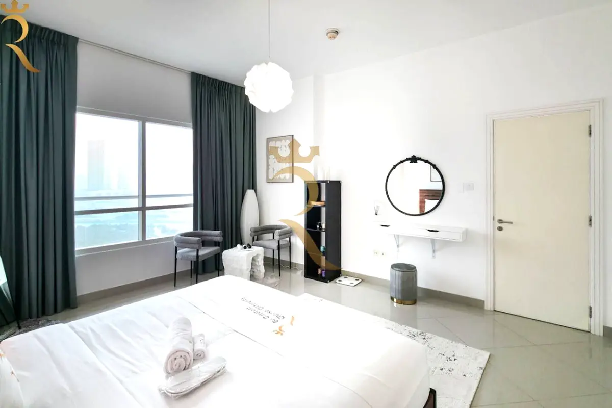 The bedroom offers a comfortable queen-size bed, while the dining area comfortably seats six—perfect for both short and extended stays. Guests also enjoy access to premium building amenities, including a swimming pool, gym, sauna, steam room, kids’ playroom, BBQ area, and secure parking.