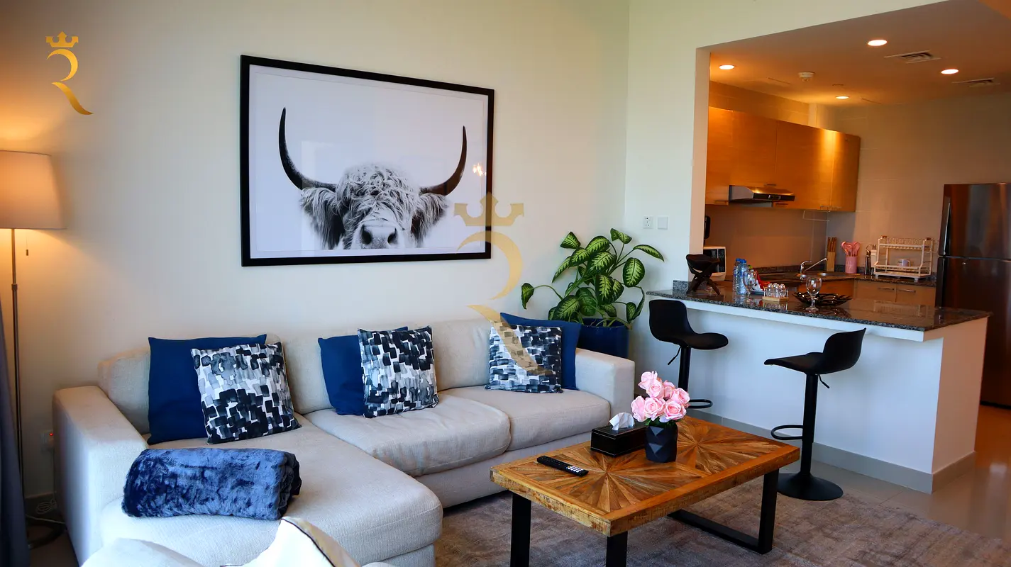 Welcome to Blanc Bliss, a stylish and spacious 950 SQFT 1-bedroom apartment in Marina Bay 1, Al Reem Island—perfect for up to 3 guests. The bedroom features a comfortable queen-size bed, complemented by a bright living area with plush seating, HD TV, and dining for four.